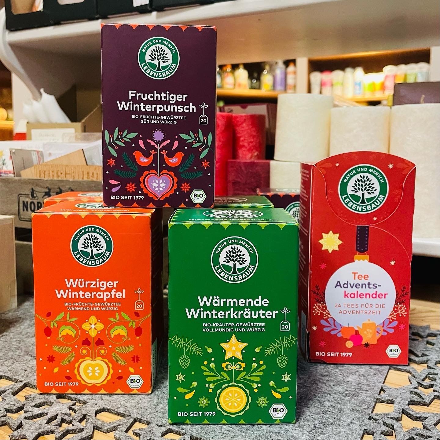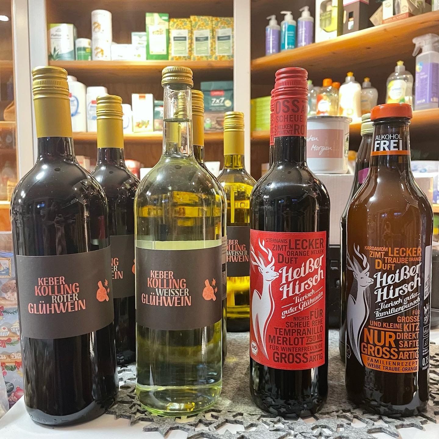 Hier weihnachtet es schon sehr - von kleinen Weihnachtsgeschenken über Adventskalender, Schoko-Weihnachtsmann, Zimsterne und Wintertees bis zu Glühwein und Punsch.